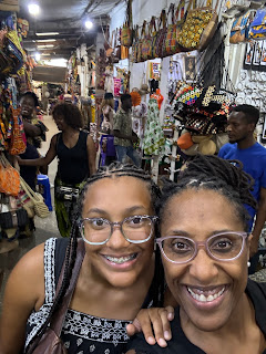 So thankful the next day was an optional day of rest, get your needs met kind of day. A group went to the hair salon for braids and it took a very long time. Beautiful work, and some of the styles chosen were very complicated and time consuming. Understandable that this was an option because we literally can't get this back home. There are no Black salons in Pittsfield. Driving to Albany, NY, Boston, Hartford, or Springfield are your best bets. Cassidy had her hair braided, I had my locs washed and retwisted, Savannah had to wait for a return trip because we ran out of time! We did have a good time. The salon in the US is a place for communnity and it was the same in Accra. Everything was familiar. The smell of products. The chairs you sit in. The counter full of hair baubles. The wall showcasing weaves and wigs. The toe tapping and head nodding to the music. Thousands of miles away and it still felt like home.